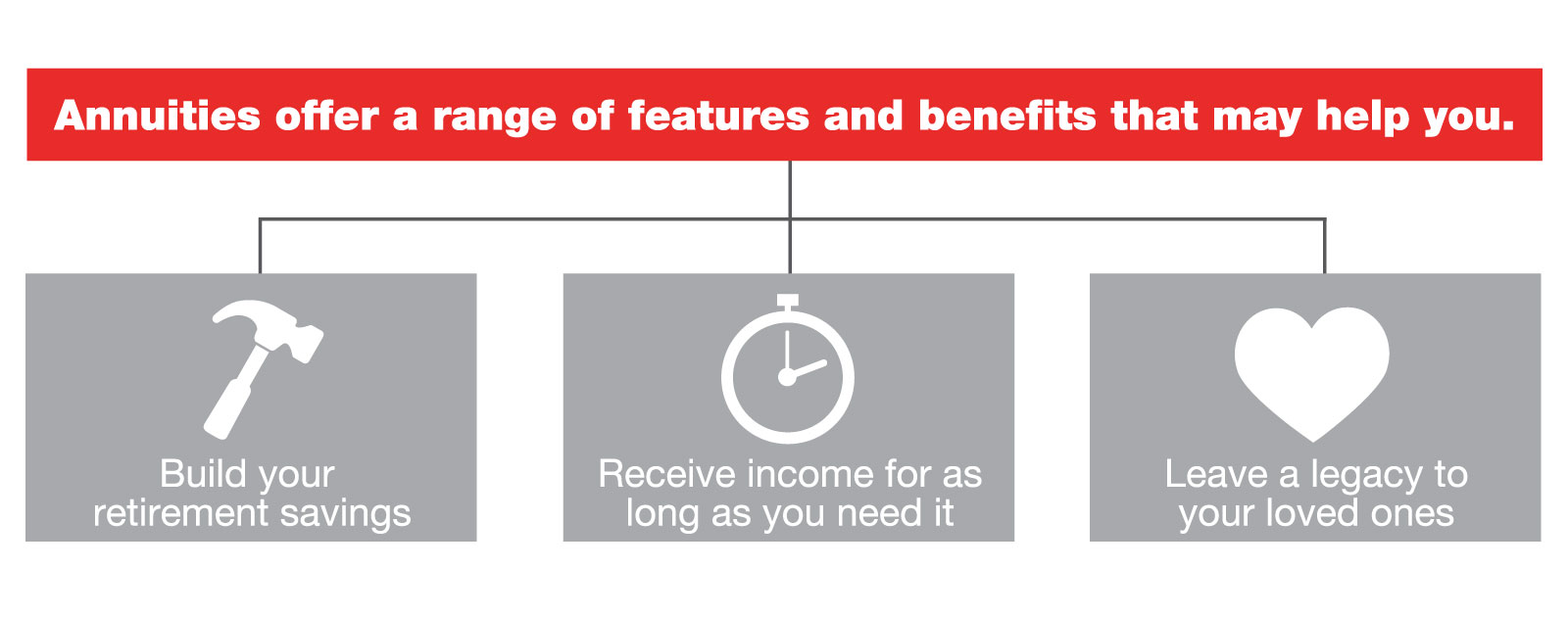 An annuity provides different features that make it a useful retirement planning tool. But what is an annuity and how does it work? An annuity is a contract issued by an insurance company that provides tax-deferred growth potential. Annuities allow you to save money for retirement. You can do this by either paying a single payment or scheduled payments over time. These payments then earn interest and after a certain amount of time, provide you with guaranteed* income for as long as you need.