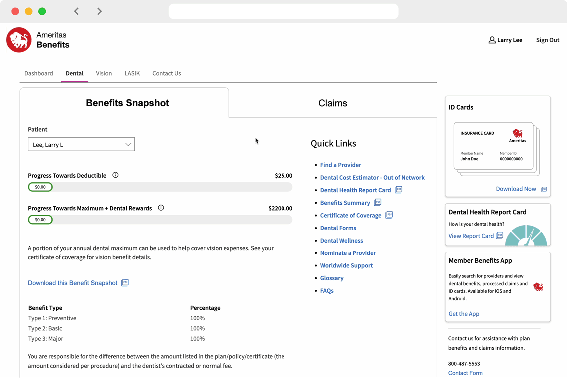 View your dental claim history, out-of-pocket expenses and remaining benefits. Further detail is available on processed claims to show how your benefits were applied.