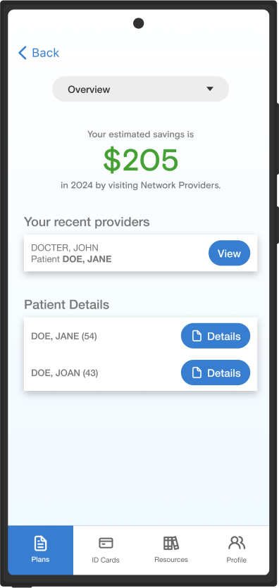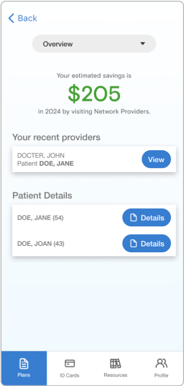 The overview page shows how much you’ve saved with your dental plan, and you can quickly check your deductible and maximum benefit amounts. You can also view your dependents’ information.