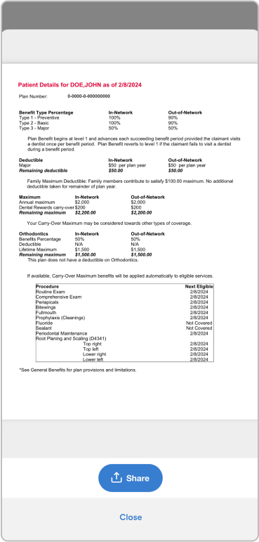 Tap into the claims section for a breakdown of your dental visits, service provider, and a link to view your explanation of benefits (EOB).