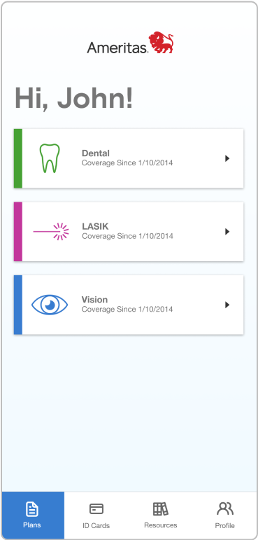 The app also includes access to vision and LASIK plan documents and ID cards when elected.